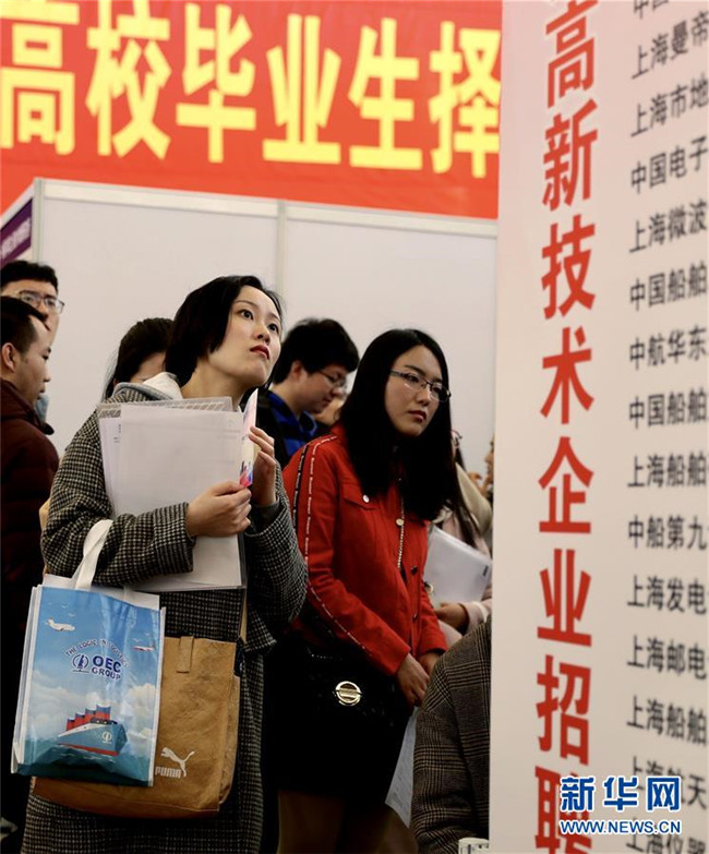 在陜西科技大學(xué)未央校區(qū),求職者參加陜西省2019屆高校畢業(yè)生精準(zhǔn)幫扶招聘會(4月12日攝)。新華社記者 張博文 攝