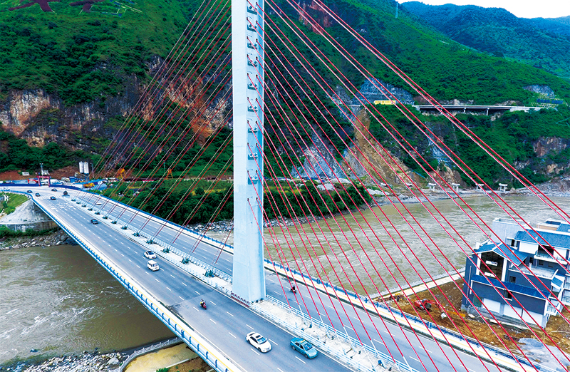 黨的十八大以來,我國把扶貧開發(fā)擺在突出位置,脫貧攻堅取得了決定性進(jìn)展,穩(wěn)步向歷史性解決絕對貧困和全面建成小康社會邁進(jìn)。云南省怒江傈僳族自治州98%以上的國土是高山峽谷,山勢陡峭,過去群眾要依靠溜索跨越怒江,出行極為困難。如今,怒江傈僳族自治州交通狀況得到極大改善,許多溜索被橋梁所取代。上圖是2013年2月2日拍攝的瀘水市六庫鎮(zhèn)雙米地村的一名村民從集市上采購年貨歸來,依靠溜索過怒江(新華社記者 王長山/攝)。下圖是2016年9月9日拍攝的雙向六車道大型公路跨江橋梁——通達(dá)橋(新華社記者 胡超/攝)。