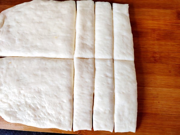 6.平均分成細(xì)長(zhǎng)條,如上圖。