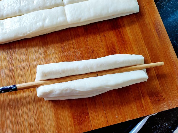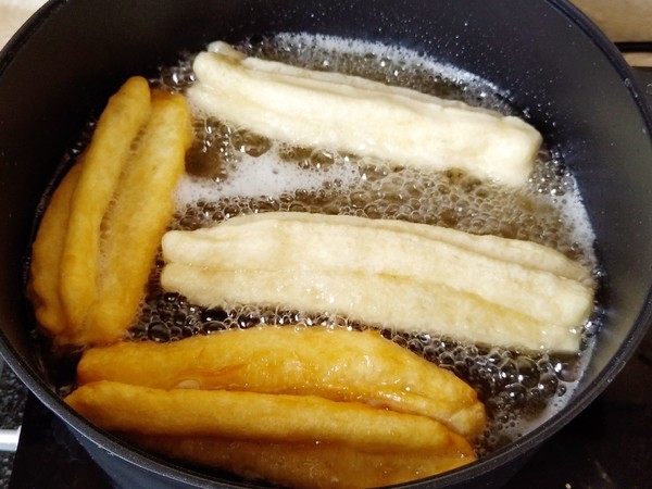 8.鍋中油燒熱,放入油條炸透。