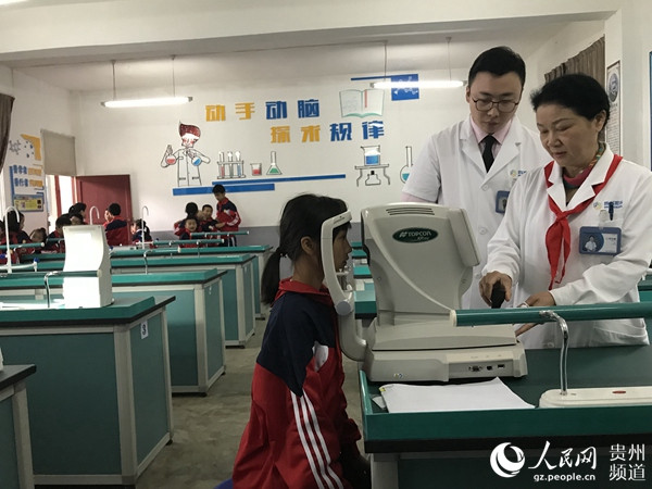 醫(yī)生免費為平壩區(qū)齊伯小學(xué)的學(xué)生進(jìn)行眼疾患篩查