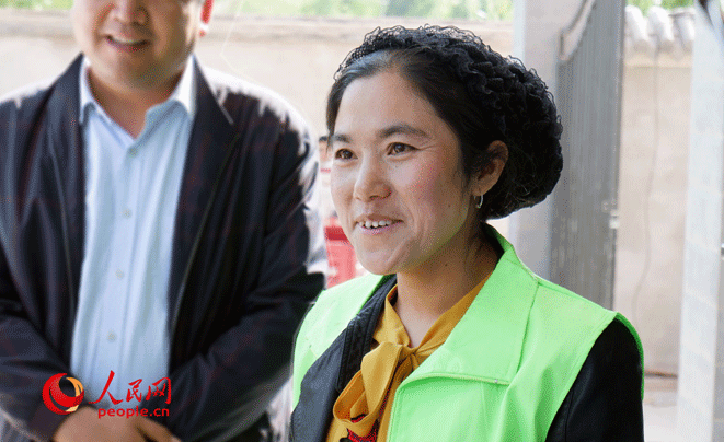 (扶貧搬遷戶黃曉燕不善言辭,在接受采訪時一直把感恩政府掛在嘴邊。人民網(wǎng) 張桂貴/攝)
