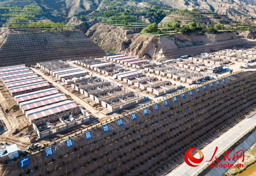 (若不是樓頂?shù)臉伺铺崾荆茈y想象這樣整齊劃一的社區(qū)是扶貧搬遷安置點。人民網(wǎng) 張桂貴/航拍)