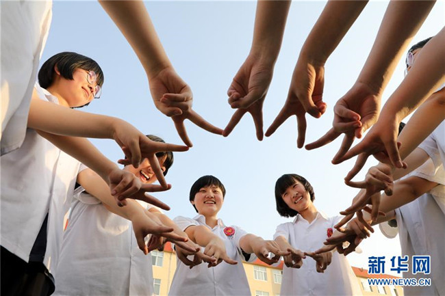 6月2日,在山東省濱州市博興縣第三中學(xué),高三學(xué)生在操場上做游戲放松心情。新華社發(fā)(陳彬 攝)