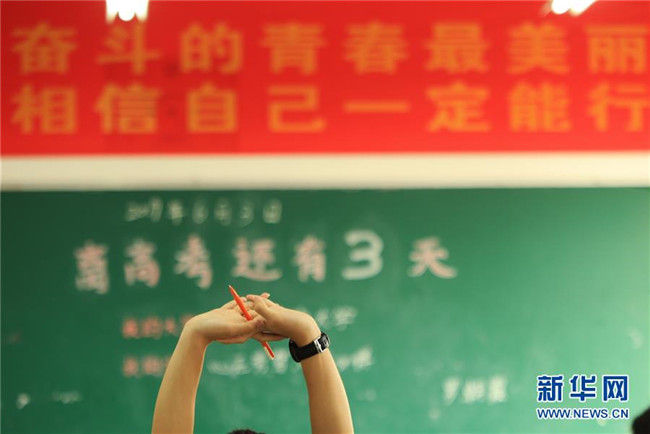 6月4日,在湖南省衡陽(yáng)縣第一中學(xué),一名高三學(xué)生自習(xí)間隙伸腰活動(dòng)。新華社發(fā)(曹正平攝)