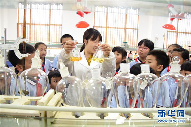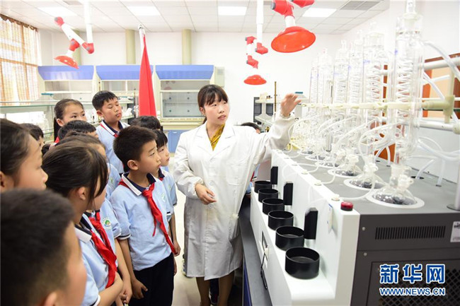 6月4日,自來水廠工作人員向小學(xué)生介紹檢測(cè)自來水的儀器。