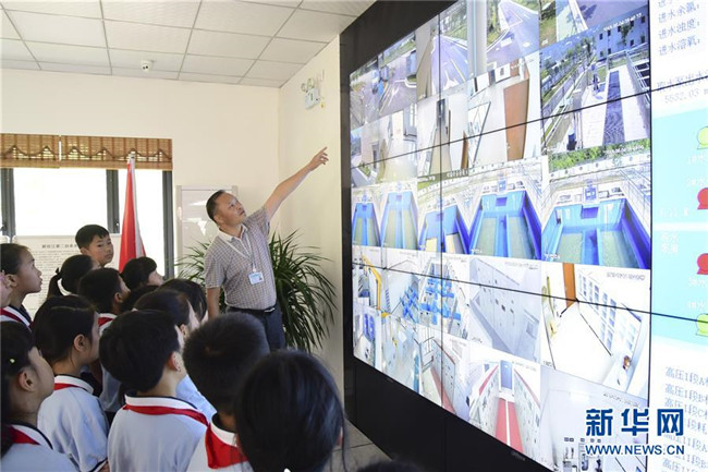 6月4日,自來水廠工作人員向小學(xué)生講解自來水生產(chǎn)過程。