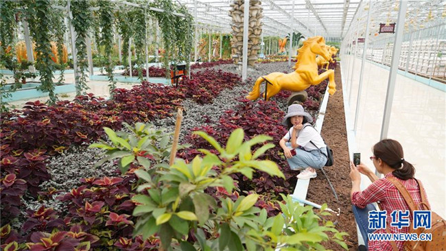 游客在江西省于都縣梓山鎮(zhèn)富硒農(nóng)業(yè)產(chǎn)業(yè)園內(nèi)參觀(2018年9月28日攝)。新華社記者 胡晨歡 攝