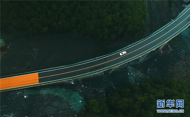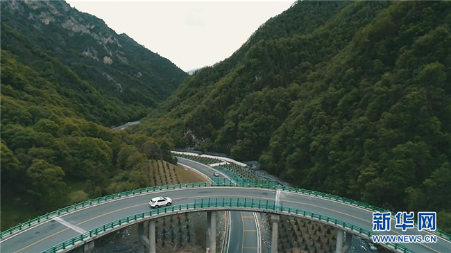 6月11日,一輛汽車(chē)在青海省扎隆溝至碾伯鎮(zhèn)公路上行駛(無(wú)人機(jī)拍攝)。 新華社記者 張宏祥 攝