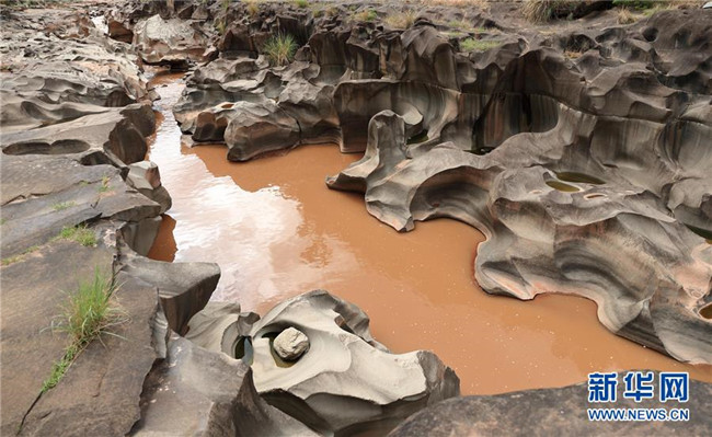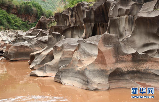 這是6月16日拍攝的四川省會(huì)東縣鲹魚(yú)河鐵柳鎮(zhèn)火石村段的壺穴地貌。新華社記者江宏景攝