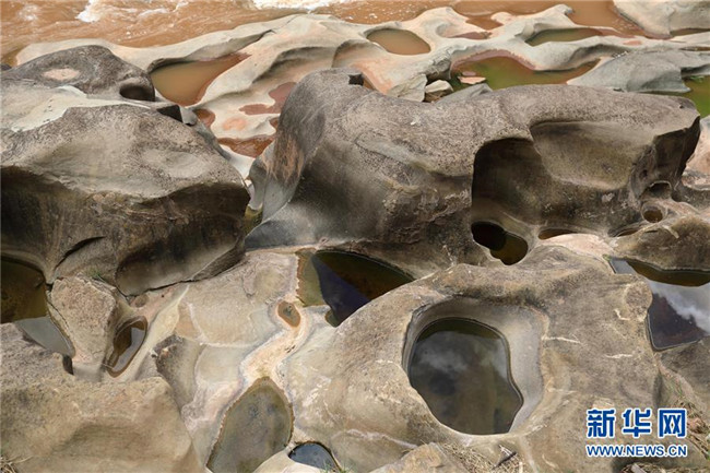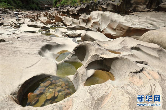 這是6月16日拍攝的四川省會(huì)東縣鲹魚(yú)河鐵柳鎮(zhèn)火石村段的壺穴地貌。