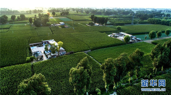陜西榆林市靖邊縣東坑鎮(zhèn)新建村綠色包圍中的農(nóng)家小院(2018年7月31日無人機拍攝)。陜西省開展的天然林保護工程和全面治理荒沙行動,極大改善了毛烏素的生態(tài)環(huán)境,也使沙漠南緣的陜西省榆林市實現(xiàn)從“沙進人退”到“綠進沙退”的轉變。 新華社記者 陶明 攝