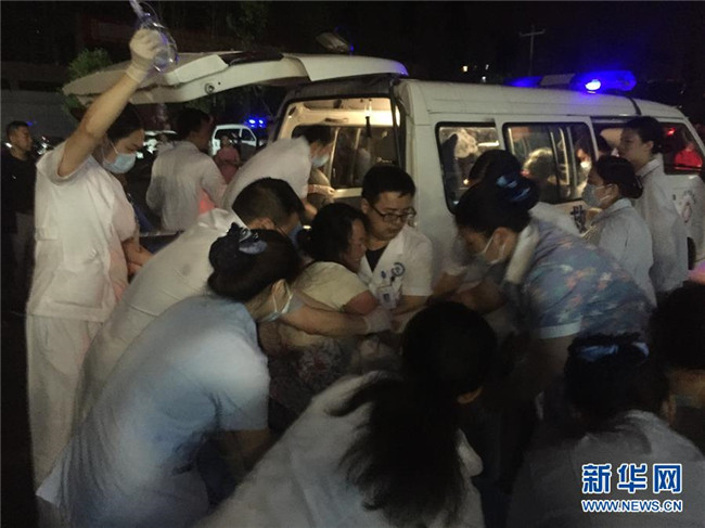 6月18日,在長寧縣中醫(yī)院,醫(yī)務人員救治地震中的傷者。新華社發(fā)(萬敏攝)