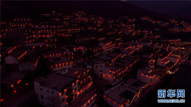 這是無人機(jī)拍攝的河北省涉縣井店鎮(zhèn)劉家村夜景(1月30日攝)。 新華社記者 王曉 攝