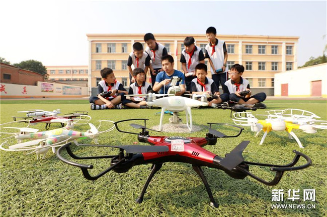 6月26日,內(nèi)丘縣實(shí)驗(yàn)小學(xué)學(xué)生在參加無人機(jī)特色課程。新華社記者 朱旭東 攝