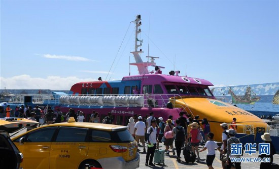 6月29日,游客從臺(tái)東縣碼頭乘船前往綠島觀光旅游。新華社記者 朱祥 攝