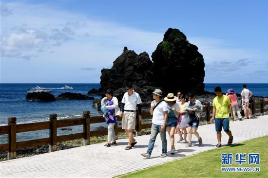 6月29日,游客在綠島海岸邊游玩。新華社記者 朱祥 攝