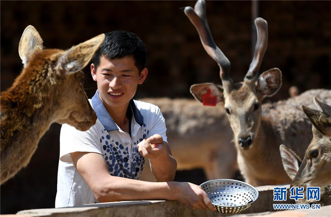 1600多公里之外,延安安塞區(qū)“80后”青年趙洋洋也在鹿舍里忙碌,身旁的梅花鹿膘肥體健。剛剛摘下貧困帽的年輕人雄心勃勃,計(jì)劃著用互聯(lián)網(wǎng)把鹿茸產(chǎn)品賣出大山。