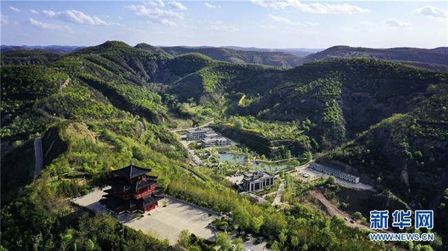 5月11日無(wú)人機(jī)拍攝的位于延安市吳起縣的退耕還林森林公園。新華社記者 陶明 攝