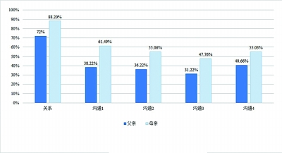 注:“關(guān)系”指的是“與父母的關(guān)系非常親近”;溝通1指的是“經(jīng)常與我討論學(xué)校發(fā)生的事情”;溝通2指的是“經(jīng)常與我討論和同學(xué)的關(guān)系”;溝通3指的是“經(jīng)常與我討論和老師的關(guān)系”;溝通4指的是“經(jīng)常與我討論心事或煩惱”。