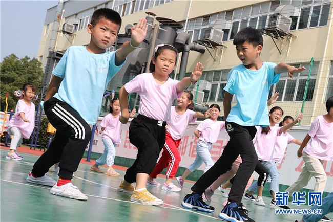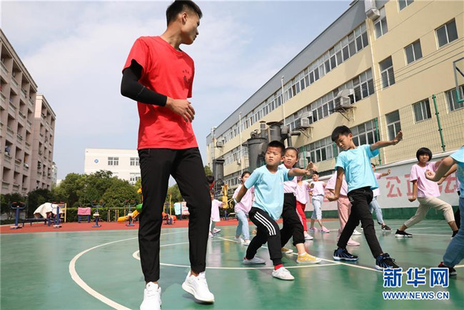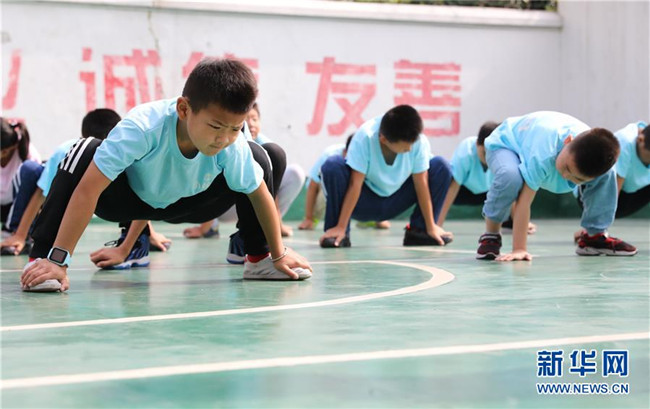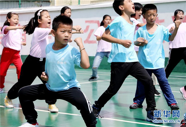 “小候鳥”們?cè)谖湫g(shù)課前做熱身運(yùn)動(dòng)(7月15日攝)。