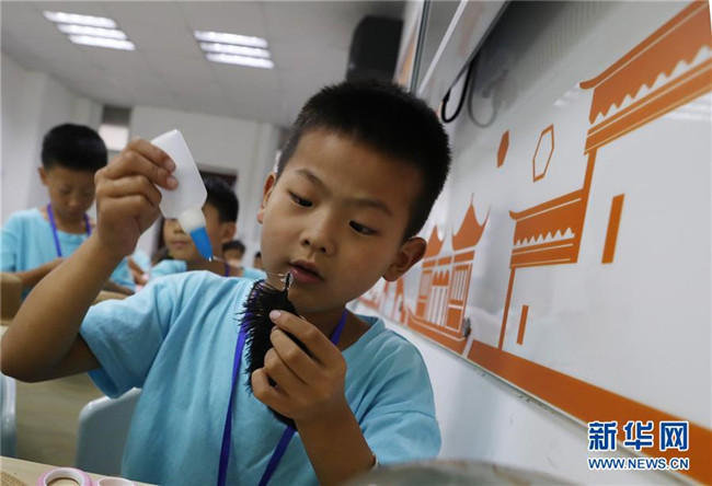 位于上海嘉定區(qū)南翔鎮(zhèn)的南翔工業(yè)開發(fā)區(qū),有許多來自外地的工人。暑假期間,許多小朋友從老家趕來開發(fā)區(qū)跟爸爸媽媽團(tuán)聚。這些“小候鳥”的爸爸媽媽白天要上班,無(wú)暇照顧孩子,上海南翔工業(yè)開發(fā)區(qū)實(shí)業(yè)有限公司職工親子工作室從7月初到8月下旬,在工作日為“小候鳥”們安排了豐富多彩的活動(dòng),包括做手工、學(xué)畫畫、練武術(shù)等,讓“小候鳥”們度過一個(gè)文武雙全的暑假生活。 新華社記者 方喆 攝