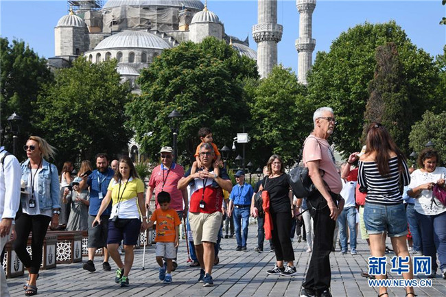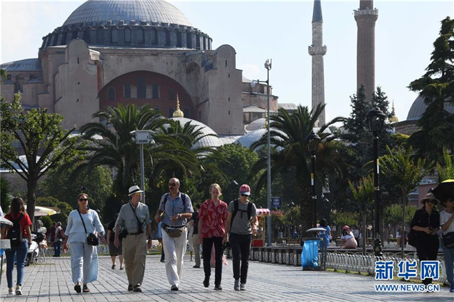 7月18日,在土耳其伊斯坦布爾,游客在一處旅游景點游覽。新華社記者 徐速繪 攝