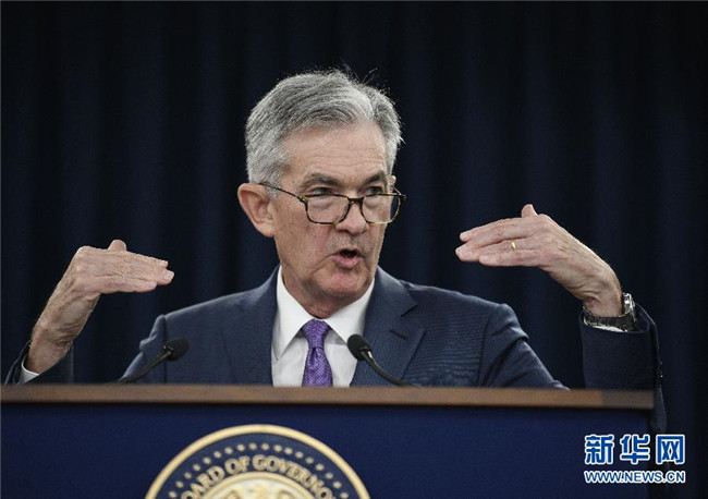 7月31日,在美國首都華盛頓,美國聯(lián)邦儲(chǔ)備委員會(huì)主席鮑威爾在新聞發(fā)布會(huì)上講話。 新華社記者 劉杰 攝