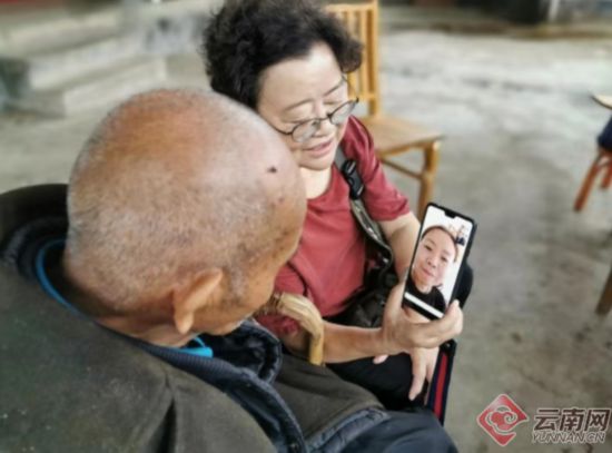 裴海清老人在四川親人的視頻電話