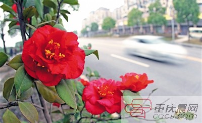 山茶花系山茶科,花期長,盛花期通常在1-3月份,花色鮮艷,顏色多樣,有70多個(gè)品種,象征著重慶的多彩文化和重慶人熱情奔放。
