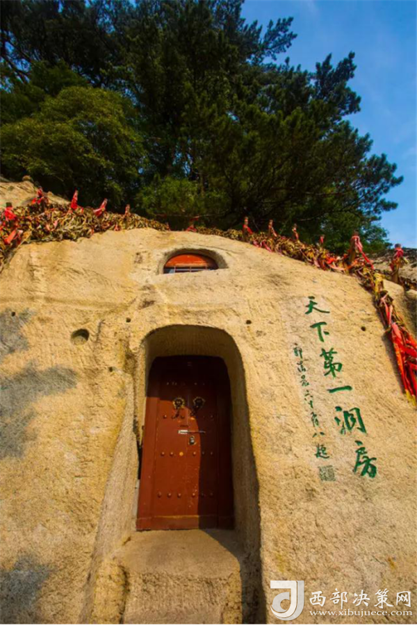 天下第一洞房位于華山西峰東側(cè)半腰,從蓮花橋經(jīng)十八譚登山路的左側(cè)即達,相傳為簫史弄玉鑿洞成婚之所。