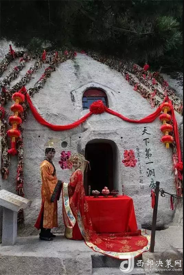 洞房周圍溪水環(huán)繞,譚似明鏡,當年簫史開弄玉一對有情人為追求忠貞不渝的愛情,放棄皇室的榮華富貴,忍受生活的清貧艱辛,攜手來此鑿洞成婚,演譯了人世間一段至真至愛,蕩氣回腸的愛情故事,洞房一詞也同此而誕生,因此它是愛情山的見證,多少年來無論是一對對相濡以沫的夫妻,還是一對對相識的戀人,一次攜手華山游,必將情深意濃,愛情甜蜜,恩愛幸福。