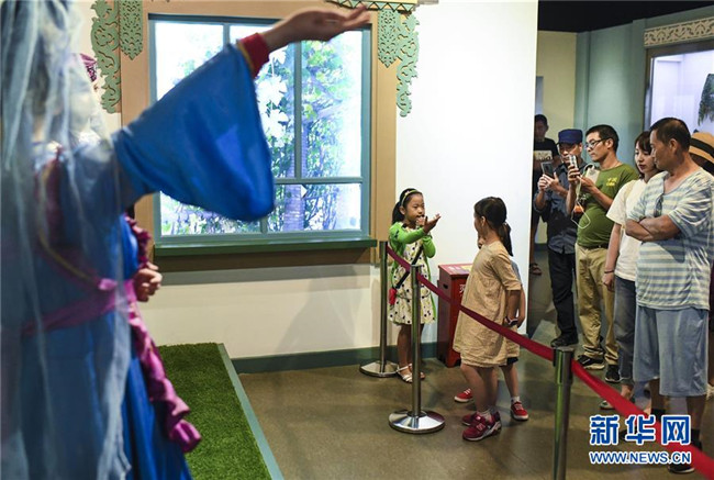 文藝揚(yáng)在新疆博物館民俗展廳中為游客做講解(8月8日攝)。 新華社記者 王菲 攝