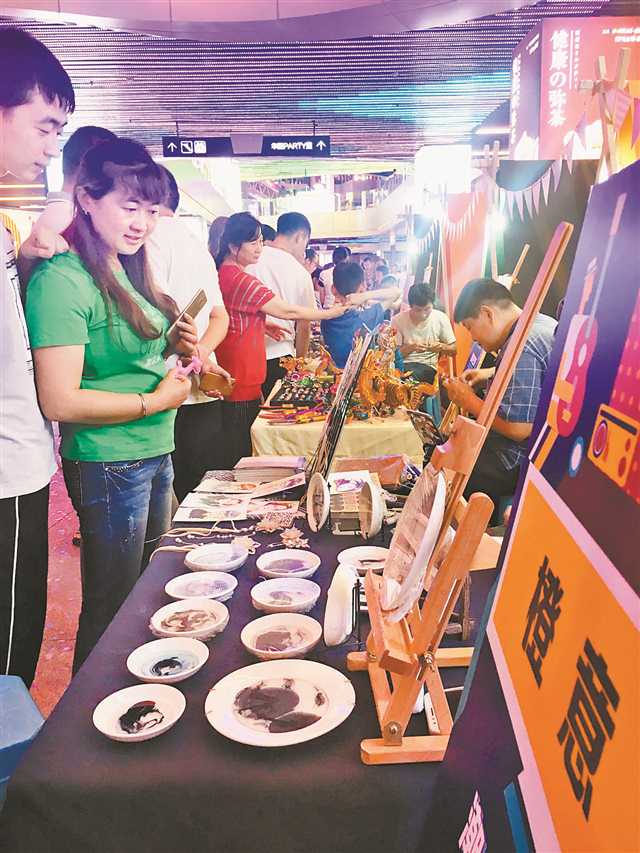 夜市上各類(lèi)手工制品受到市民追捧。記者 王翔 攝