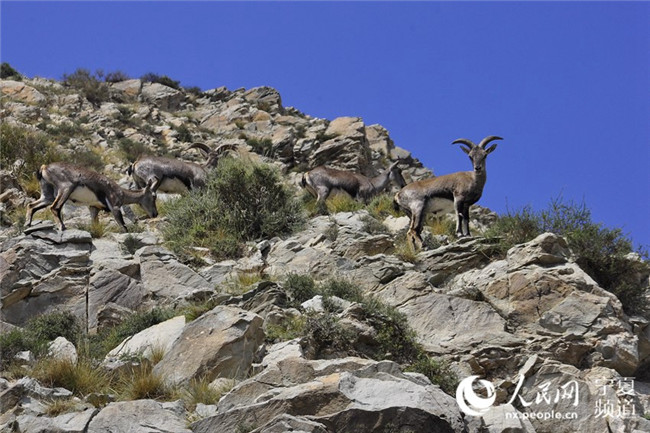 近日,記者在賀蘭山蘇峪口國家森林公園看到,在藍(lán)天白云下成群巖羊自由徜徉在山間,時而嬉戲、時而狂奔。記者從寧夏回族自治區(qū)林業(yè)和草原局獲悉,經(jīng)過多年保護,賀蘭山自然保護區(qū)一帶的巖羊總數(shù)已有4萬多只,賀蘭山已成為世界巖羊分布密度最高的地區(qū)之一。
