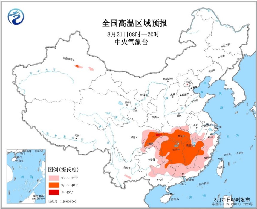 未來三天,西南地區(qū)東部、江漢、江南、華南中北部等地將有高溫天氣。中央氣象臺8月21日06時繼續(xù)發(fā)布高溫黃色預警。預計8月21日白天,江漢大部、江南大部、四川盆地東部、重慶、貴州東部、華南中北部等地最高氣溫35~36℃,其中,湖北中南部、湖南大部、江西大部、四川東北部、重慶大部、廣西東北部等地的部分地區(qū)最高氣溫37~39℃,重慶北部局地可達40℃以上。