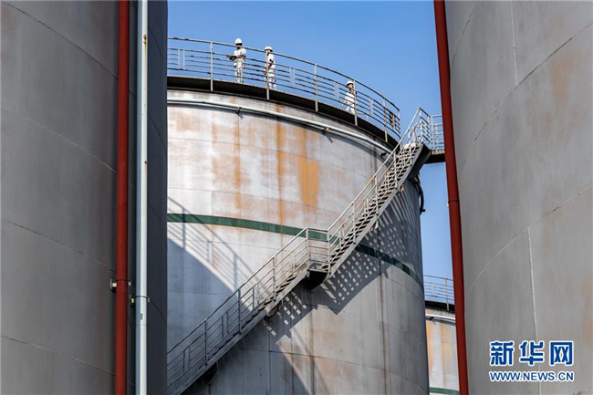 8月25日,中儲糧襄陽直屬庫職工在油品存儲區(qū)巡查。