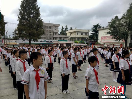 9月2日,金寨縣希望小學(xué)開學(xué)的第一天,學(xué)校舉行升旗儀式?!垙?qiáng) 攝