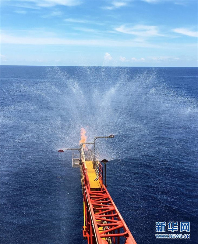 2017年7月9日拍攝的南海天然氣水合物試采工程現(xiàn)場。當(dāng)日,我國海域天然氣水合物(可燃冰)首次試開采取得圓滿成功。 新華社發(fā)(朱夏 攝)