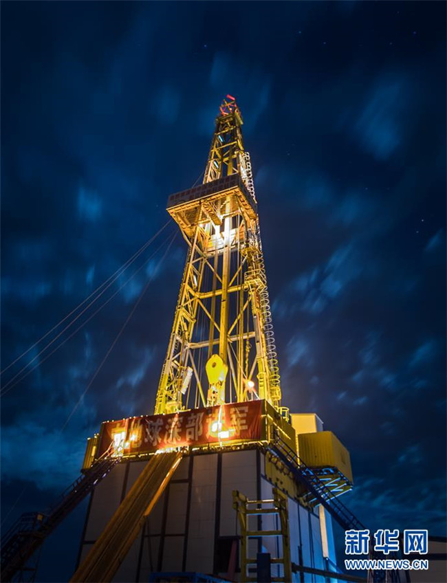 夜幕下的“地殼一號”萬米鉆機(jī)整機(jī)系統(tǒng)(2018年6月1日攝)。2018年6月2日,吉林大學(xué)主要承擔(dān)研發(fā)的“地殼一號”萬米鉆機(jī)正式宣布完成“首秀”:完鉆井深7018米,創(chuàng)造了亞洲國家大陸科學(xué)鉆井新紀(jì)錄,標(biāo)志著我國成為繼俄羅斯和德國之后,世界上第三個擁有實施萬米大陸鉆探計劃專用裝備和相關(guān)技術(shù)的國家。 新華社記者 許暢 攝