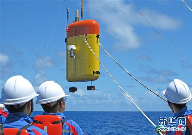 2016年7月1日,在馬里亞納海溝附近海域,“海斗”準(zhǔn)備下潛進(jìn)行科學(xué)考察。我國自主研制的“海斗”號無人潛水器在首次綜合性萬米深淵科考中成功進(jìn)行了一次八千米級、兩次九千米級和兩次萬米級下潛應(yīng)用,最大潛深達(dá)10767米,創(chuàng)造了我國無人潛水器的最大下潛及作業(yè)深度紀(jì)錄,使我國成為繼日、美兩國之后第三個擁有研制萬米級無人潛水器能力的國家。 新華社發(fā)