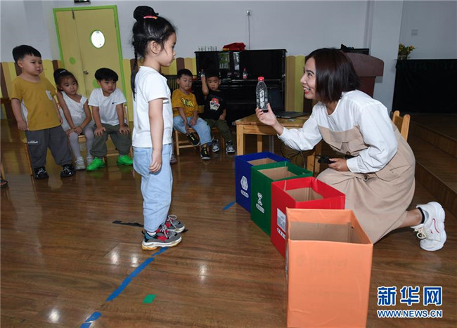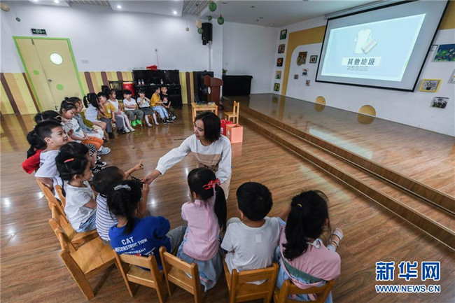 當(dāng)日,浙江省湖州市織里鎮(zhèn)晟舍幼兒園的小朋友們迎來(lái)了開學(xué)第一課——垃圾分類課。幼兒園通過請(qǐng)小朋友觀看幻燈片、動(dòng)畫短片以及進(jìn)行趣味游戲等方式,讓孩子們?cè)陂_學(xué)之初了解垃圾分類知識(shí)和垃圾分類的重要性。據(jù)了解,織里鎮(zhèn)所有幼兒園和中小學(xué)目前都已經(jīng)將垃圾分類常識(shí)課放入到學(xué)校日常課程中。 新華社記者 徐昱 攝