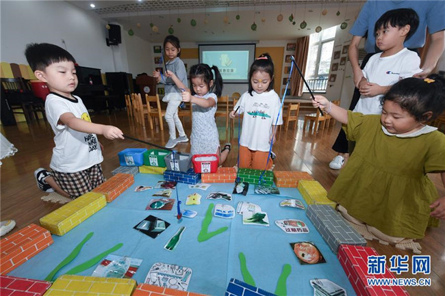 9月4日,孩子們通過趣味游戲?qū)W習(xí)垃圾分類的知識(shí)。