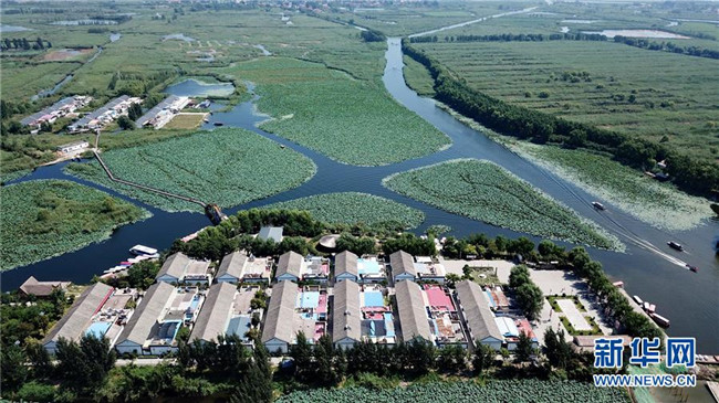 游客在白洋淀景區(qū)內(nèi)游覽(8月31日無人機(jī)拍攝)。 新華社記者 牟宇 攝