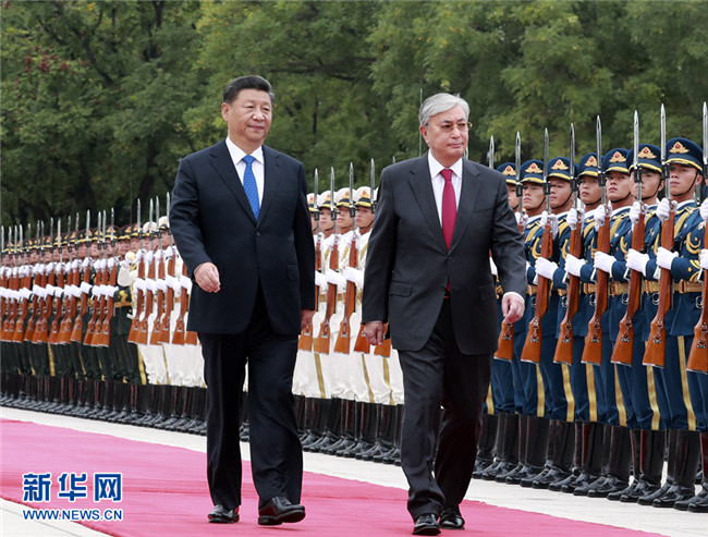 9月11日,國家主席習(xí)近平在北京人民大會堂同哈薩克斯坦總統(tǒng)托卡耶夫舉行會談。這是會談前,習(xí)近平在人民大會堂東門外廣場為托卡耶夫舉行歡迎儀式。 新華社記者 姚大偉 攝