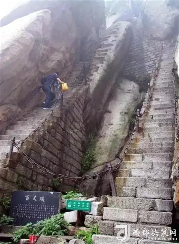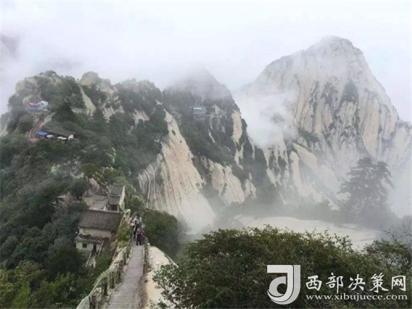 眾所周知,華山在五岳之中以“險峻”著稱。素有“奇險天下第一山”之譽,華山的主體是由一塊完整碩大的花崗巖體構成的,挺拔地屹立在渭河平原。東、南、西三峰拔地而起,如利刃削就。由于華山太險,所以唐代以前很少有人登臨,歷代君王祭祀西岳,也只是在山下西岳廟中舉行大典。據記載,直到魏晉南北朝時期,還沒有通向華山峰頂?shù)牡缆?。唐代才逐漸在北坡沿溪谷而上開鑿了一條險道,也從此有了“自古華山一條路”的說法。