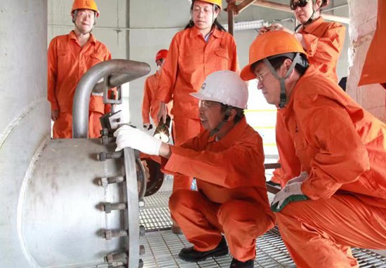 陳俊武在作業(yè)現(xiàn)場調(diào)試設備。中國石化洛陽工程有限公司供圖