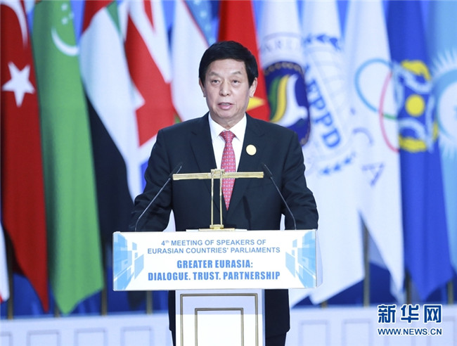 第四屆歐亞國(guó)家議長(zhǎng)會(huì)議24日在哈薩克斯坦首都努爾蘇丹舉行。全國(guó)人大常委會(huì)委員長(zhǎng)栗戰(zhàn)書出席會(huì)議開幕式并作主旨發(fā)言。