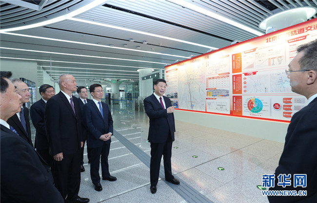 在草橋站進站大廳,習(xí)近平結(jié)合展板聽取情況介紹。習(xí)近平強調(diào),城市軌道交通是現(xiàn)代大城市交通的發(fā)展方向。發(fā)展軌道交通是解決大城市病的有效途徑,也是建設(shè)綠色城市、智能城市的有效途徑。北京要繼續(xù)大力發(fā)展軌道交通,構(gòu)建綜合、綠色、安全、智能的立體化現(xiàn)代化城市交通系統(tǒng),始終保持國際最先進水平,打造現(xiàn)代化國際大都市。