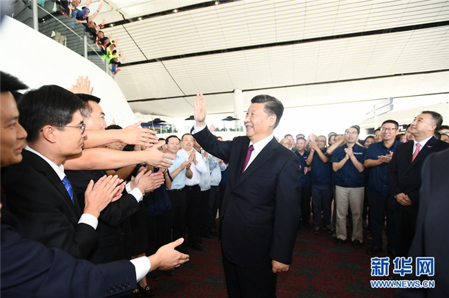 投運儀式在機場聯(lián)檢大廳舉行。11時許,伴隨著歡快的迎賓曲,習(xí)近平等步入儀式現(xiàn)場,全場起立鼓掌。